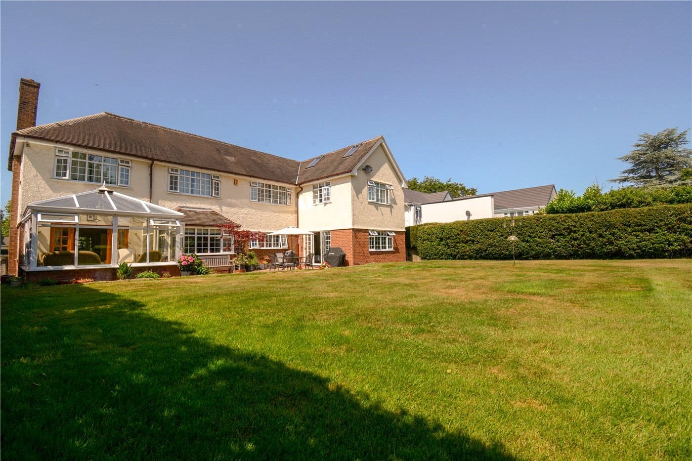This beautiful and inviting five-bedroom family home is tucked away in one of the most exclusive neighbourhoods on the Wirral. With around one acre of manicured lawns and landscaped gardens, privacy and plenty of space are one of the main assets of this delightful, five-bedroomed property.