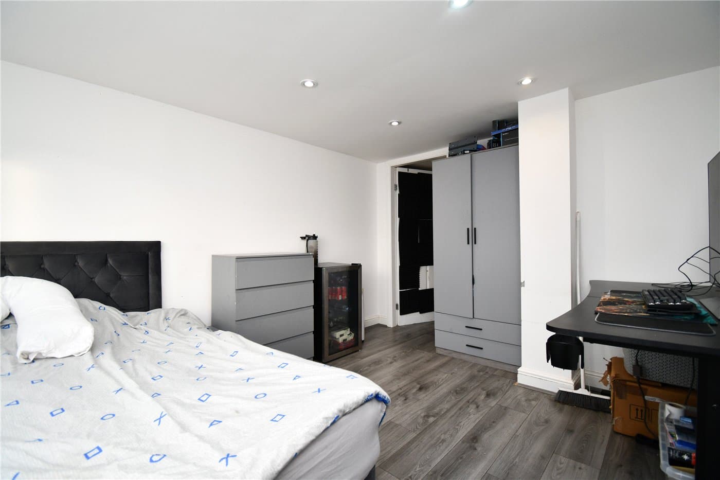 Converted garage providing bedroom/office space