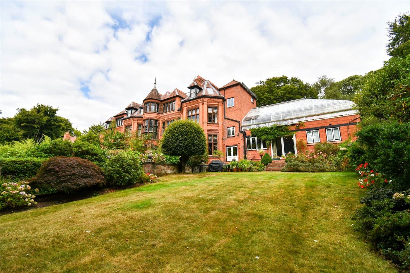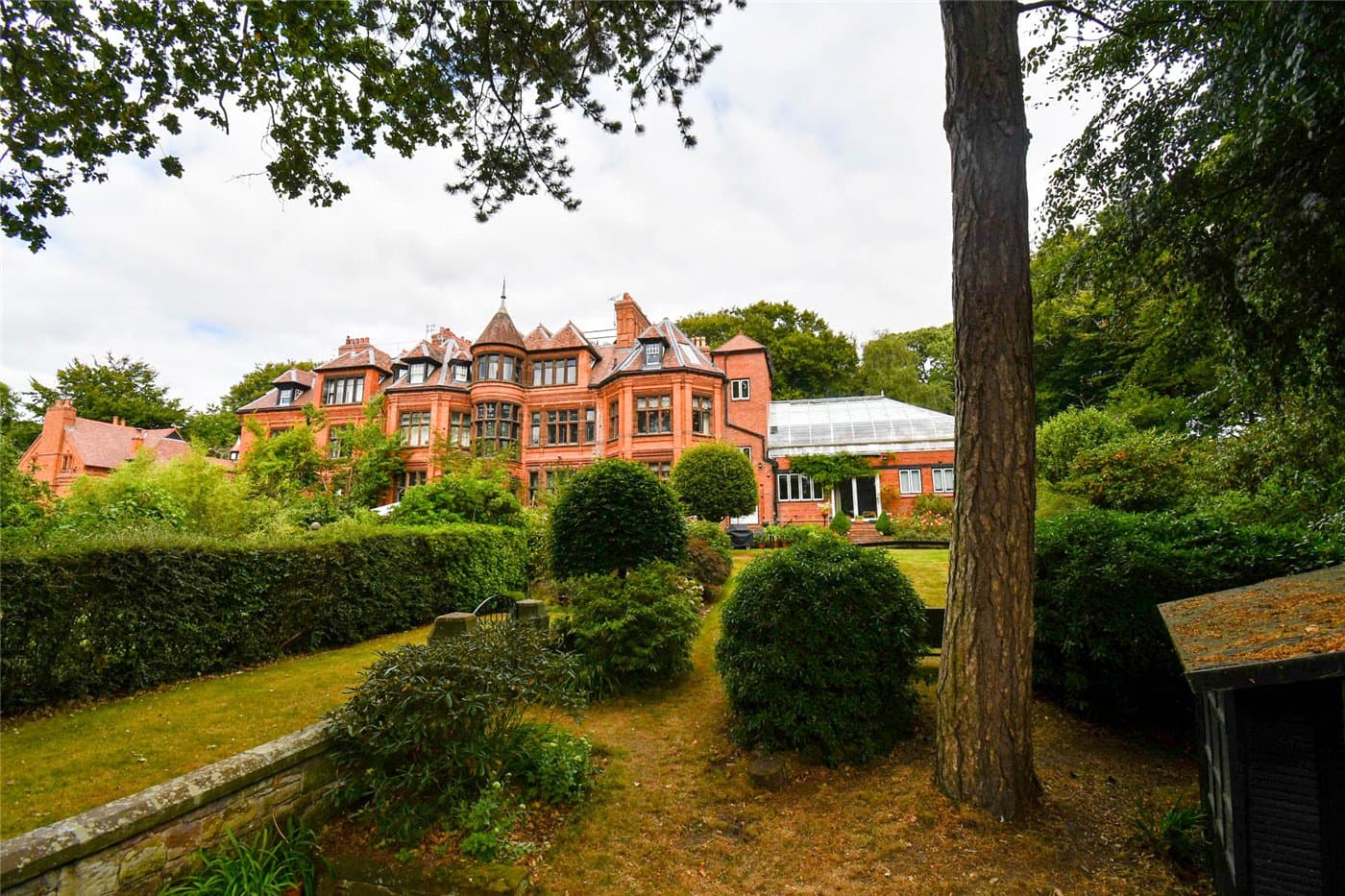 Grade II listed residence forming part of the historic Mere Hall, set in 4.5 acres of landscaped grounds. Offering approx. 4,000 sqft of accommodation, including three spacious reception rooms, and unique 33′ glass house with stunning views. Large private garden and an abundance of period features.