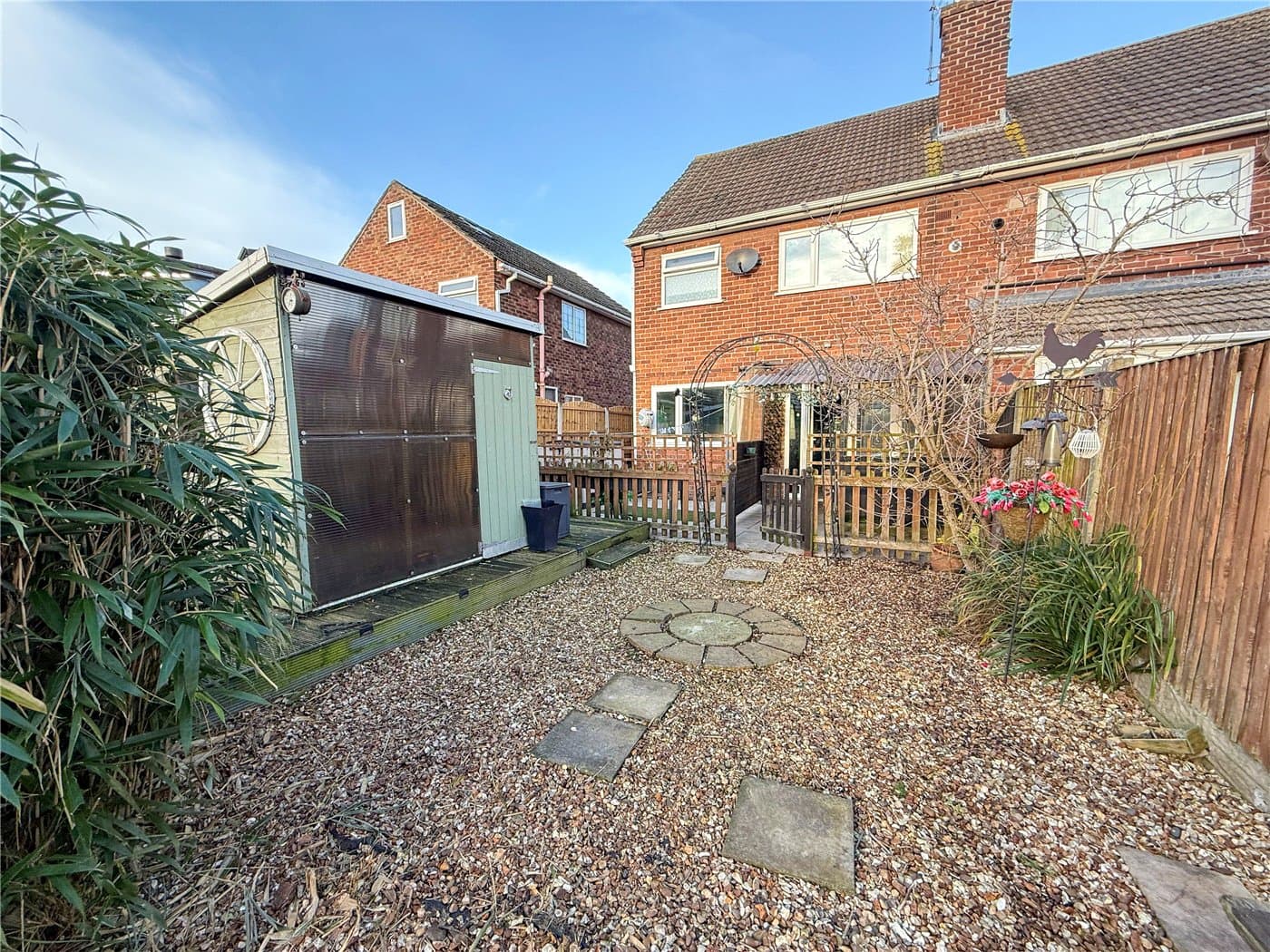 A semi-detached home, offered with no onward chain, sits in a quiet cul-de-sac and is ideal for first-time buyers or families. It features a front living room, open-plan kitchen/diner with garden access, three bedrooms and a bathroom, ample parking, a lawned front garden and a generous rear garden.