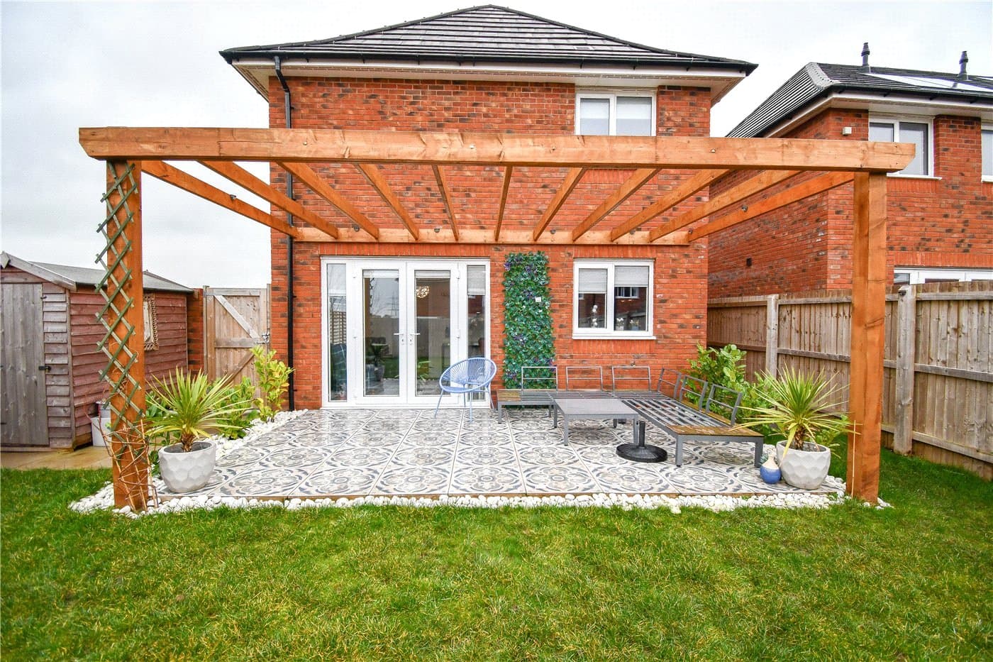 Rear Garden With Turkish Mosaic Patio And Pergola
