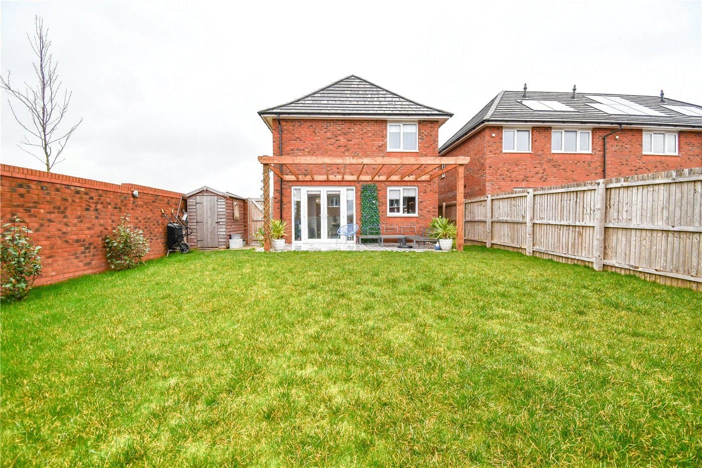 Immaculate 3-bedroom detached home on the Redrow Ledsham Gardens development. High-spec finish throughout with open-plan kitchen/diner, ensuite to master, utility, and downstairs W.C. Sunny garden, Turkish mosaic patio with pergola and driveway for several cars. Move-in ready family home.