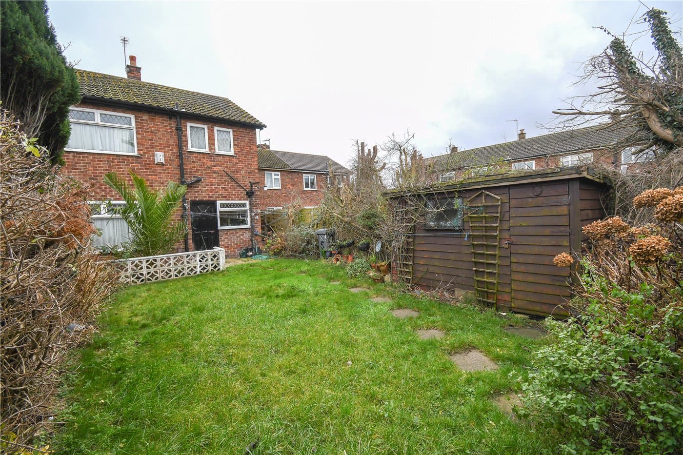 An end terrace three bedroom home with huge potential, backing onto open fields. Offering gardens front and rear, generous room sizes, and excellent access to schools and transport links, this property presents a renovation opportunity in a convenient after location area.